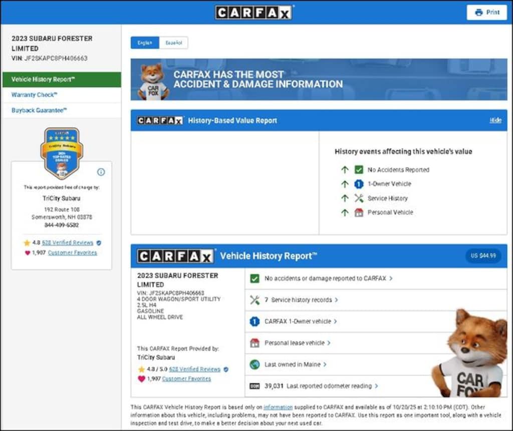 As a Subaru Certified Pre-Owned vehicle, this Forester has undergone a rigorous 152-point inspection and comes with a comprehensive warranty and additional benefits that provide you with unparalleled peace of mind. Enjoy Roadside Assistance, a $0 Warranty Deductible, a Transferable Warranty, and a Powertrain Limited Warranty that extends up to 84 months or 100,000 miles from the original in-service date. Plus, you'll receive a 3-month trial subscription to SiriusXM, a $500 Owner Loyalty coupon, and a 1-year trial subscription to STARLINK.