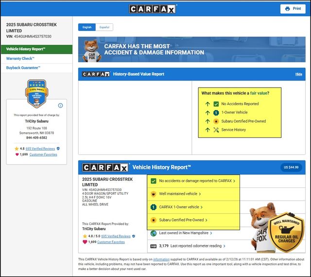 Elevate your driving experience with this exceptional 2025 Subaru Crosstrek Limited. With its exceptional blend of capability, comfort, and style, this Certified Pre-Owned Crosstrek is the perfect companion for your next adventure. Visit our showroom today and discover the difference for yourself.