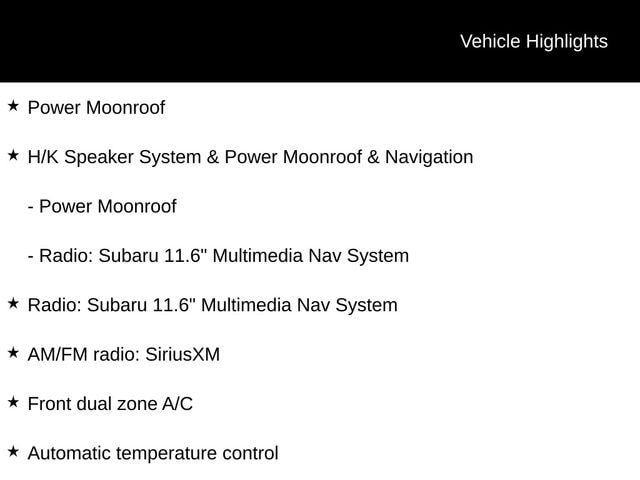⢠Radio: Subaru 11.6" Multimedia Nav System