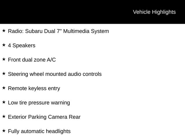 In addition, the Impreza includes a 3-month trial subscription to SiriusXM, a $500 Owner Loyalty coupon, and a 1-year trial subscription to STARLINK, Subaru's advanced infotainment and connectivity platform. These features further enhance the Impreza's value and ensure you can stay connected and entertained on the go.