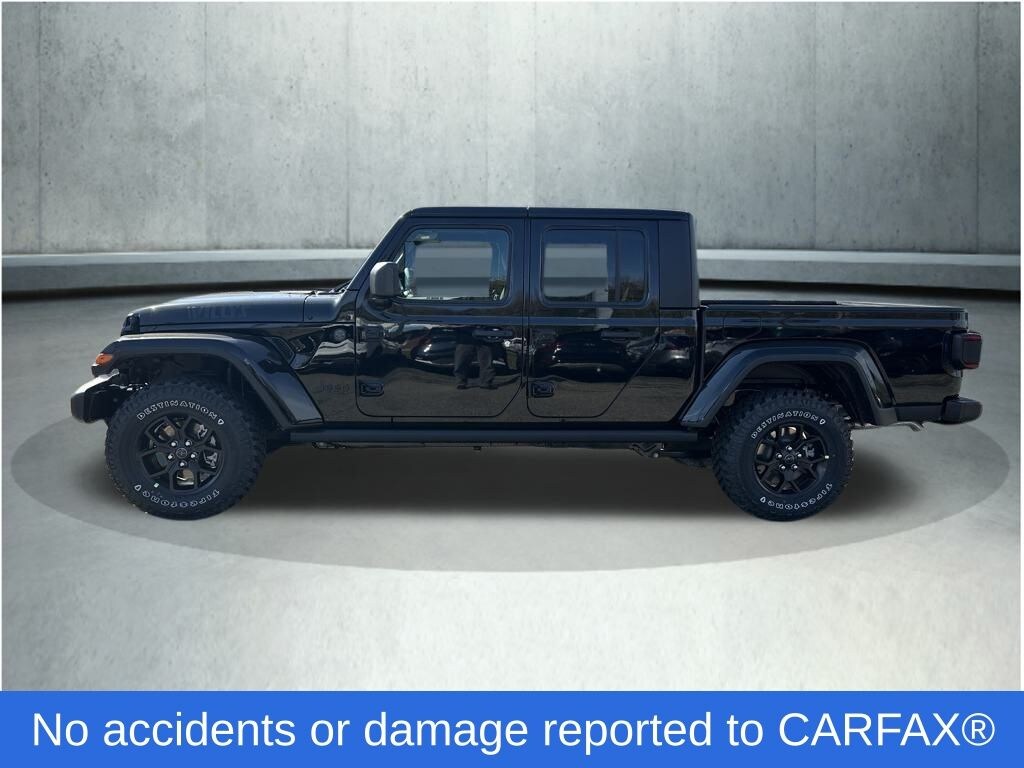 Black Clearcoat 2025 Jeep Gladiator Willys 8-Speed Automatic 4-Wheel Drive Decal, 97 MPH Vehicle Max Speed Calibration, Advanced Brake Assist, Air Conditioning w/Auto Temperature Control, Automatic Headlamps, Auxiliary Switches, Black Grille, Body Color Fender Flares (2-Piece), Class IV Receiver Hitch, Cluster 7.0" TFT Color Display, Convenience Group, Corning Gorilla Glass, Daytime Running Lamp System, Daytime Running Lamps LED Accents, Deep Tint Sunscreen Windows, E-Locker Rear Axle, Emergency/Assistance Call, Enhanced Adaptive Cruise Control, Front Door Locks 2-Door Passive Entry, Front fog lights, Front Heavy Duty Red Accent Shock Absorbers, Front LED Fog Lamps, Full Speed Forward Collision Warning Plus, Heated Front Seats, Heated Steering Wheel, Heavy-Duty Engine Cooling, LED Premium Reflector Headlamps, LED Taillamps, Mold In Color Bumper w/Gloss Black, MOPAR All-Weather Slush Mats, Off-Road Plus Mode, ParkView Rear Back-Up Camera, Power Heated Mirrors, Premium Wrapped Steering Wheel, Protection Sill Rails, Quick Order Package 24W Willys, Radio: Uconnect 5 w/12.3" Display, Rear Heavy Duty Red Accent Shock Absorbers, Remote Start System, Security Alarm, Sun Visors w/Illuminated Vanity Mirrors, Trailer Hitch Zoom, Universal Garage Door Opener, Wheels: 17" x 7.5" Painted Black, Willys Hood Decal, Willys Suspension. Price includes: $2250 - 2025 National Bonus Cash . Exp. 11/03/2025