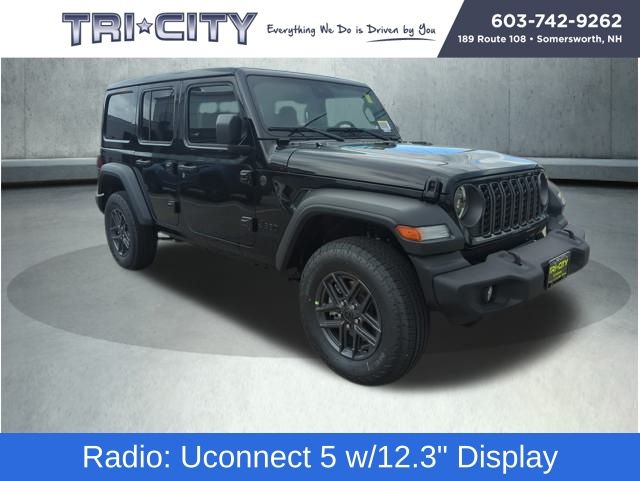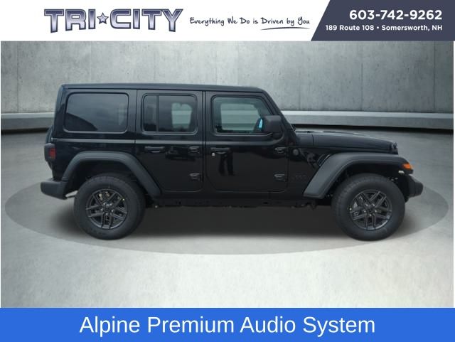 Black Clearcoat 2025 Jeep Wrangler Sport S 4WD 8-Speed Automatic 3.6L V6 24V VVT 2-Door Passive Entry, Front Door Locks, Advanced Brake Assist, Air Conditioning w/Auto Temperature Control, Air Filtering, Alpine Premium Audio System, Apple CarPlay/Android Auto, Automatic Headlamps, Cluster 7.0" TFT Color Display, Convenience Group, Corning Gorilla Glass, Deep Tint Sunscreen Windows, Electronic Stability Control, Emergency/Assistance Call, Enhanced Adaptive Cruise Control, Front fog lights, Front LED Fog Lamps, Full Speed Forward Collision Warning Plus, Heated Front Seats, Heated Steering Wheel, LED Headlamp & Fog Lamp Group, LED Premium Reflector Headlamps, ParkView Rear Back-Up Camera, Power Heated Mirrors, Power Top Quarter Window Storage Bag, Premium Wrapped Steering Wheel, Quick Order Package 24S Sport S, Radio: Uconnect 5 w/12.3" Display, Rear Window Defroster, Rear Window Wiper/Washer, Remote Start System, Removable Rear Quarter Windows, Security Alarm, Sky 1-Touch Power Top, Steering wheel mounted audio controls, Sun Visors w/Illuminated Vanity Mirrors, Technology Group (DISC), Universal Garage Door Opener, Wheels: 17" x 7.5" Gray.