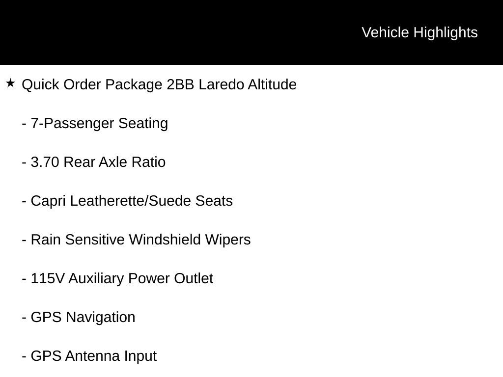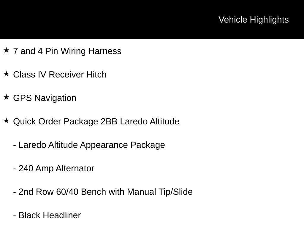 Bright White Clearcoat 2026 Jeep Grand Cherokee L Laredo 8-Speed Automatic 115V Auxiliary Power Outlet, 12.3" Touchscreen Display, 240 Amp Alternator, 2nd Row 60/40 Bench with Manual Tip/Slide, 2nd Row Seat Center Armrest/Cupholders, 3 Rear Seat Head Restraints, 3.70 Rear Axle Ratio, 3rd Row Charge-Only USB Ports, 4G LTE Wi-Fi Hot Spot, 7 and 4 Pin Wiring Harness, 7-Passenger Seating, Active Driving Assist System, Active Noise Control System, an-Teak/Satin Chrome Interior Accents, Apple CarPlay, Automatic temperature control, Black Headliner, Body Color Door Handles (B), Capri Leatherette/Suede Seats, Center Rear 3-Point Seat Belt, Class IV Receiver Hitch, Connected Travel and Traffic Services, Connectivity - US/Canada, Delete Laredo Badge, Disassociated Touchscreen Display, Dual Exhaust Tips, Exterior Accents Dark Neutral Metallic, For Details, Visit DriveUconnect.com, Front Fascia Upper A, Global Telematics Box Module (TBM), Google Android Auto, GPS Antenna Input, GPS Navigation, HD Radio, Heated Front Seats, Heated Steering Wheel, Heavy-Duty Engine Cooling, Integrated Center Stack Radio, Integrated Voice Command with Bluetooth, Intersection Collision Assist System, Laredo Altitude Appearance Package, Manual Fold Seatbacks, Power Liftgate, Quick Order Package 2BB Laredo Altitude, Radio: Uconnect 5 Nav with 12.3" Display, Rain Sensitive Windshield Wipers, Rear Fascia Upper A, Rear Load Leveling Suspension, Remote Start System, Secondary Active Grille Shutters, Selec-Terrain System, Selectable Tire Fill Alert, SiriusXM with 360L, Traffic Sign Recognition, Trailer Hitch Zoom, Trailer Tow Package, USB Host Flip, Wheels: 18" x 8.0" Fully Painted Aluminum 1, Wireless Charging Pad. Price includes: $1500 - 2026 National Retail Bonus Cash . Exp. 04/30/2026