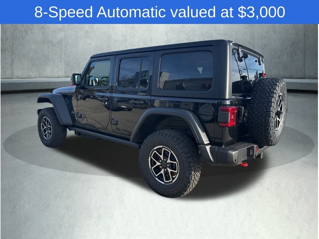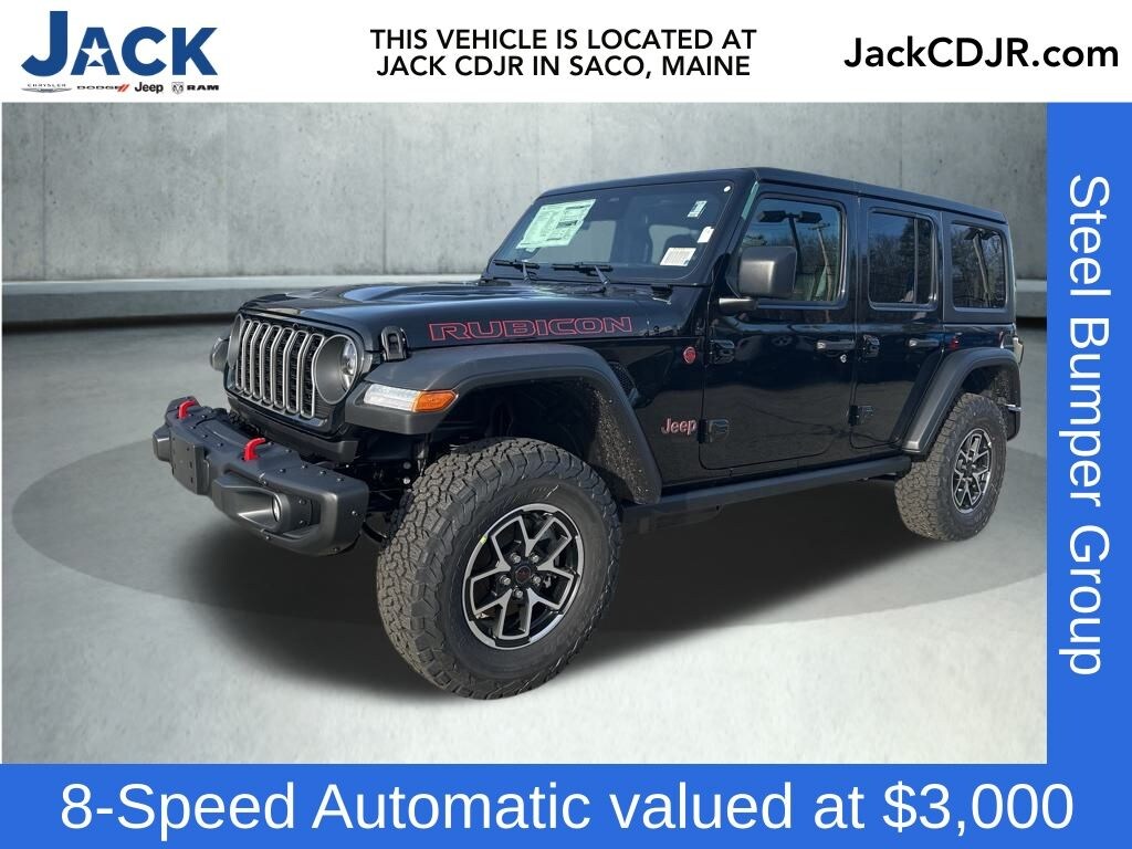 Black Clearcoat 2026 Jeep Wrangler Rubicon 8-Speed Automatic Alpine Premium Audio System, Apple CarPlay/Android Auto, Auto High Beam Headlamp Control, Automatic temperature control, Black 3-Piece Hard Top, Blind Spot and Cross Path Detection, Class II Receiver Hitch, Convenience Group, Electronic Stability Control, Freedom Panel Storage Bag, Fully automatic headlights, Heated Front Seats, Heated Steering Wheel, No Soft Top, Overhead airbag, ParkSense Rear Park Assist System, Performance Suspension, Radio: Uconnect 5 with 12.3" Display, Rear Window Defroster, Rear Window Wiper/Washer, Remote keyless entry, Safety Group, Security system, Speed control, Steel Bumper Group, Steel Front Bumper, Steel Rear Bumper, Traction control, Universal Garage Door Opener, Wheels: 17" x 7.5" Machined/Painted Black.