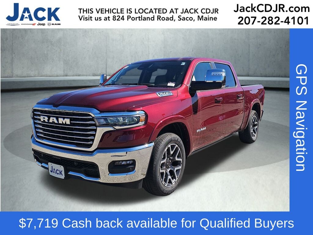 Delmonico Red Pearlcoat 2025 Ram 1500 Laramie 8-Speed Automatic 14.4" Touchscreen Display, 4G LTE Wi-Fi Hot Spot, Apple CarPlay, Auto Power-Folding Mirrors, Auto-Dimming Exterior Driver Mirror, Auto-Dimming Exterior Passenger Mirror, Bed Utility Group, Black Exterior Mirrors, Chrome Exterior Mirrors, Cluster 12" TFT Color Display, Connected Travel & Traffic Services, Connectivity - US/Canada, Dome Dual LED Reading Lamp, Dual-Pane Panoramic Sunroof, Electronic Stability Control, Exterior Mirrors Courtesy Lamps, Exterior Mirrors w/Heating Element, Exterior Mirrors w/Memory, Exterior Mirrors w/Supplemental Signals, Forward & Reverse Utility Lights, Google Android Auto, GPS Antenna Input, GPS Navigation, harman/kardon 19 Speaker Premium Sound, HD Radio, Integrated Voice Command w/Bluetooth, Laramie Level 2 Equipment Group, LED Dome/Reading Lamp, Mirror Clearance/Running Lights, MOPAR 4 Adjustable Cargo Tie-Down Hooks, MOPAR Spray In Bedliner, Navigation System, Power Tailgate, Power Telescoping Mirrors, Power-Adjustable Convex Aux Mirrors, Radio: Uconnect 5 Nav w/14.4" Display, Rain Sensitive Windshield Wipers, Security system, SiriusXM w/360L, Trailer Brake Control, Trailer Light Check, Trailer Reverse Steering Control, Trailer Tire Pressure Monitoring System, Trailer Tow Group, Trailer Tow Mirrors, USB Host Flip. Price includes: 10% Msrp - 2025 National 10% Below MSRP . Exp. 11/03/2025