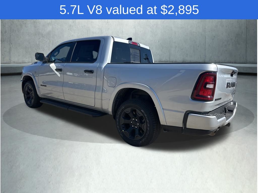 Silver Zynith 2026 Ram 1500 Big Horn/Lone Star 8-Speed Automatic 115V Auxiliary Power Outlet, 115V Auxiliary Rear Power Outlet, 12" Touchscreen Display, 2nd Row in Floor Storage Bins, 3 Rear Seat Head Restraints, 4 Way Front Headrests, 400W Inverter, 4G LTE Wi-Fi Hot Spot, 9 Amplified Speakers with Subwoofer, Accent Color Door Handles, Accent Color Premium Power Mirrors, Accent Color Tailgate Handle, Air Conditioning ATC with Dual Zone Control, Anti-Spin Differential Rear Axle, Apple CarPlay, Auto Power-Folding Mirrors, Auto-Dimming Exterior Driver Mirror, Auto-Dimming Rear-View Mirror, Big Horn Level 2 Equipment Group, Black Exterior Mirrors, Black Exterior Truck Badging, Black Headlamp Bezels, Black Interior Accents, Black Painted Exterior Mirrors Caps, Black Premium Power Mirrors, Black Tail Lamp Bezels, Body Color Fender Flares, Body Color Front Bumper, Body Color Rear Bumper with Step Pads, Bucket Seats, Center Console Parts Module, Cluster 7.0" TFT Color Display, Configurable Drive Mode, Connected Travel and Traffic Services, Connectivity - US/Canada, Convex Wide-Angle Exterior Mirror Insert, Deluxe Cloth Bucket Seats, Disassociated Touchscreen Display, Dual Exhaust with Black Tips, Electronic Stability Control, Exterior Mirrors Courtesy Lamps, Exterior Mirrors with Heating Element, Exterior Mirrors with Supplemental Signals, Front Seat Back Map Pockets, Full Length Floor Console, Global Telematics Box Module, Glove Box Lamp, Google Android Auto, GPS Antenna Input, GPS Navigation, Grille Black Surround Black Mesh, HD Radio, Heated Front Seats, Heated Steering Wheel, Integrated Center Stack Radio, Integrated Voice Command with Bluetooth, Leather Wrapped Steering Wheel, LED Dome Lamp with on/Off Switch, LED Footwell Lighting, Manual Adjust 4-Way Front Passenger Seat, Media Hub with 2 Charge Only USBs, Mopar Black Tubular Side Steps, Night Edition, Overhead LED Lamps, ParkView Rear Back-Up Camera, Power 2-Way Driver Lumbar Adjust, Power Adjust 8-Way Driver Seat, Power Adjustable Pedals, Premium Overhead Console, Radio: Uconnect 5 Navigation with 12.0" Display, RAM Grille Badge - Black, Rear 60/40 Folding Seat, Rear Center Armrest, Rear Power Sliding Window, Rear Window Defroster, Remote Tailgate Release, Security Alarm, SiriusXM Radio Service, SiriusXM with 360L, Steering Wheel Mounted Audio Controls, Sun Visors with Illuminated Vanity Mirrors, Universal Garage Door Opener, USB Host Flip, Wheels: 20" x 9.0" Aluminum Painted Clad, Wheels: 20" x 9" Aluminum Chrome Clad. Price includes: $3500 - 2026 National Retail Bonus Cash . Exp. 04/30/2026