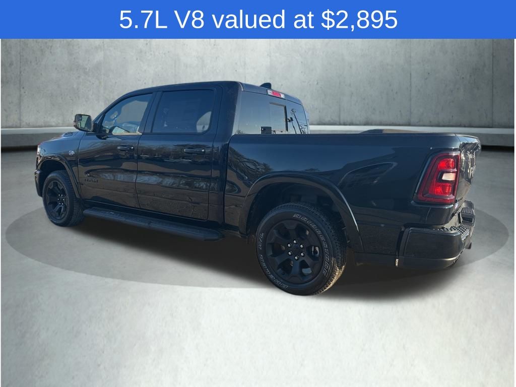 Diamond Black Crystal Pearlcoat 2026 Ram 1500 Big Horn/Lone Star 8-Speed Automatic 115V Auxiliary Power Outlet, 115V Auxiliary Rear Power Outlet, 12" Touchscreen Display, 2nd Row in Floor Storage Bins, 3 Rear Seat Head Restraints, 4 Way Front Headrests, 400W Inverter, 4G LTE Wi-Fi Hot Spot, 9 Amplified Speakers with Subwoofer, Accent Color Door Handles, Accent Color Premium Power Mirrors, Accent Color Tailgate Handle, Air Conditioning ATC with Dual Zone Control, Anti-Spin Differential Rear Axle, Apple CarPlay, Auto Power-Folding Mirrors, Auto-Dimming Exterior Driver Mirror, Auto-Dimming Rear-View Mirror, Big Horn Level 2 Equipment Group, Black Exterior Mirrors, Black Exterior Truck Badging, Black Headlamp Bezels, Black Interior Accents, Black Painted Exterior Mirrors Caps, Black Premium Power Mirrors, Black Tail Lamp Bezels, Body Color Fender Flares, Body Color Front Bumper, Body Color Rear Bumper with Step Pads, Bucket Seats, Center Console Parts Module, Cluster 7.0" TFT Color Display, Configurable Drive Mode, Connected Travel and Traffic Services, Connectivity - US/Canada, Convex Wide-Angle Exterior Mirror Insert, Deluxe Cloth Bucket Seats, Disassociated Touchscreen Display, Dual Exhaust with Black Tips, Exterior Mirrors Courtesy Lamps, Exterior Mirrors with Heating Element, Exterior Mirrors with Supplemental Signals, Front Seat Back Map Pockets, Full Length Floor Console, Global Telematics Box Module, Glove Box Lamp, Google Android Auto, GPS Antenna Input, GPS Navigation, Grille Black Surround Black Mesh, HD Radio, Heated Front Seats, Heated Steering Wheel, Integrated Center Stack Radio, Integrated Voice Command with Bluetooth, Leather Wrapped Steering Wheel, LED Dome Lamp with on/Off Switch, LED Footwell Lighting, Manual Adjust 4-Way Front Passenger Seat, Media Hub with 2 Charge Only USBs, Mopar Black Tubular Side Steps, Night Edition, Overhead LED Lamps, ParkView Rear Back-Up Camera, Power 2-Way Driver Lumbar Adjust, Power Adjust 8-Way Driver Seat, Power Adjustable Pedals, Premium Overhead Console, Radio: Uconnect 5 Navigation with 12.0" Display, RAM Grille Badge - Black, Rear 60/40 Folding Seat, Rear Center Armrest, Rear Power Sliding Window, Rear Window Defroster, Remote Tailgate Release, Security Alarm, SiriusXM Radio Service, SiriusXM with 360L, Steering Wheel Mounted Audio Controls, Sun Visors with Illuminated Vanity Mirrors, Traction control, Universal Garage Door Opener, USB Host Flip, Wheels: 20" x 9.0" Aluminum Painted Clad, Wheels: 20" x 9" Aluminum Chrome Clad. Price includes: $3500 - 2026 National Retail Bonus Cash . Exp. 04/30/2026