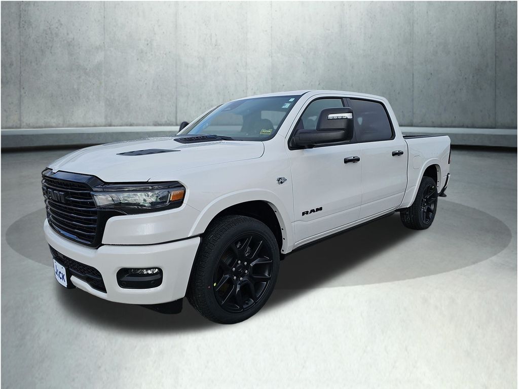 Ivory White Tri-Coat Pearlcoat 2026 Ram 1500 Laramie 8-Speed Automatic 12-Way/1-Way Trailer Connector, 14.4" Touchscreen Display, 4G LTE Wi-Fi Hot Spot, Accent Color Door Handles, Accent Color Premium Power Mirrors, Accent Color Tailgate Handle, Active Driving Assist System, Advanced Safety Group II, Anti-Spin Differential Rear Axle, Auto Power-Folding Mirrors, Auto-Dimming Exterior Driver Mirror, Automatic temperature control, Bed Utility Group, Black Exterior Truck Badging, Black Headlamp Bezels, Black Interior Accents, Black Painted Exterior Mirrors Caps, Black Tail Lamp Bezels, Body Color Front Bumper, Body Color Rear Bumper with Step Pads, Cluster 12" TFT Color Display, Connected Travel and Traffic Services, Connectivity - US/Canada, Convex Wide-Angle Exterior Mirror Insert, Dome Dual LED Reading Lamp, Drowsy Driver Detection, Dual Exhaust with Black Tips, Dual-Pane Panoramic Sunroof, Evasive Steer Assist, Exterior 115V AC Outlet, Exterior Mirrors Approach Lamps, Exterior Mirrors Courtesy Lamps, Exterior Mirrors with Heating Element, Exterior Mirrors with Memory, Exterior Mirrors with Supplemental Signals, Front Passenger Interactive Display, GPS Navigation, Grille Surround 3 Black Texture 2 Black, Harman/Kardon 19 Speaker Premium Sound, Integrated Center Stack Radio, Integrated Voice Command with Bluetooth, Intersection Collision Assist System, Laramie Level 2 Equipment Group, LED Dome/Reading Lamp, MOPAR 4 Adjustable Cargo Tie-Down Hooks, MOPAR Spray in Bedliner, Night Edition, ParkView Rear Back-Up Camera, Pirelli Brand Tires, Power Tailgate, Proximity Approach/Departure Lamps, Radio: Uconnect 5 Nav with 14.4" Display, Rain Sensitive Windshield Wipers, RAM Grille Badge - Black, SiriusXM Radio Service, SiriusXM with 360L, Sport Performance Hood, Surround View Camera System, Traffic Sign Recognition, Trailer Brake Control, Trailer Reverse Steering Control, Trailer Tire Pressure Monitoring System, Trailer Tow Group, USB Host Flip, Wheels: 22" x 9" Forged Aluminum. Price includes: $3500 - 2026 National Retail Bonus Cash . Exp. 04/30/2026