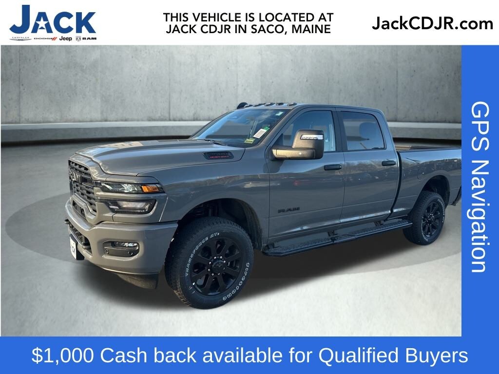 Pdn 2026 Ram 2500 Big Horn 8-Speed Automatic 12" Touchscreen Display, 2 Way Rear Headrest Seat, 2nd Row In Floor Storage Bins, 4 Way Front Headrests, 40/20/40 Split Bench Seat, 4G LTE Wi-Fi Hot Spot, 9 Alpine Speakers w/Subwoofer, Air Conditioning ATC w/Dual Zone Control, Alexa Built-In, Anti-Spin Differential Rear Axle, Apple CarPlay, Auto Power-Folding Mirrors, Auto-Dimming Rear-View Mirror, Big Horn Level 1 Plus Equipment Group, Black Exterior Mirrors, Black Exterior Truck Badging, Black Interior Accents, Black Wheel Center Hub, Body Color Grille-Surround, Connected Travel & Traffic Services, Connectivity - US/Canada, Disassociated Touchscreen Display, Dual Glove Boxes, Emergency Vehicle Alert System (EVAS), Exterior Mirrors Courtesy Lamps, Exterior Mirrors w/Heating Element, Exterior Mirrors w/Supplemental Signals, Foam Bottle Insert (Door Trim Panel), Folding Flat Load Floor Storage, Footwell Courtesy Lamp, For Details, Visit DriveUconnect.com, For More Info, Call 800-643-2112, Forward & Reverse Utility Lights, Front Armrest w/Cupholders, Front Center Seat Cushion Storage, Front fog lights, Front Seat Back Map Pockets, Global Telematics Box Module (TBM), Gloss Black Nostrils/Mic Black Grille, Glove Box Lamp, Google Android Auto, GPS Antenna Input, GPS Navigation, HD Radio, Heated Front Seats, Heated Seats & Wheel Group, Heated Steering Wheel, Integrated Voice Command w/Bluetooth, LED Bed Lighting, Locking Lower Glove Box, Luxury Steering Wheel, Manual Adjust 4-Way Front Passenger Seat, Mirror Running Lights, MOPAR Deployable Bed Step, MOPAR Spray In Bedliner, Night Edition, Off-Road Info Pages, Painted Front Bumper, Painted Rear Bumper, ParkView Rear Back-Up Camera, Power 2-Way Driver Lumbar Adjust, Power Adjust 8-Way Driver Seat, Power Adjust Mirrors, Power Heated Folding Telescopic Mirrors, Power Telescoping Mirrors, Power-Adjustable Convex Aux Mirrors, Premium Cloth 40/20/40 Bench Seat, Radio: Uconnect 5 Nav w/12.0" Display, Rear 60/40 Folding Seat, Rear Dome w/On/Off Switch Lamp, Remote Start System, Remote USB Port - Charge Only, Selectable Tire Fill Alert, SiriusXM Radio Service, SiriusXM w/360L, Steering Wheel Mounted Audio Controls, Storage Tray, Trailer Tow Pages, Wheels: 20" x 8.0" Black Painted Aluminum. Price includes: $1000 - 2026 National Bonus Cash . Exp. 12/01/2025