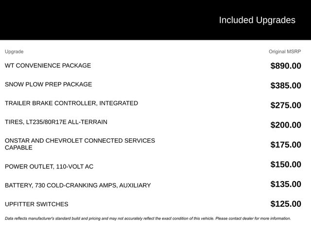 SNOW PLOW PREP PACKAGE: * POWER FEED FOR BACKUP AND ROOF EMERGENCY LIGHT * ALTERNATOR, 220 AMPS * FORWARD LAMP WIRING HARNESS * PROVISIONS-ROOF MOUNTED LAMP * UNDERBODY SHIELDS