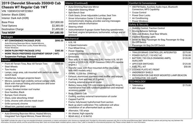 Discover the ultimate work truck in the 2019 Chevrolet Silverado 3500HD Work Truck. This rugged and capable machine is built to handle the toughest jobs with ease, thanks to its powerful Vortec 6.0L V8 engine and 4-wheel drive capabilities. Featuring a sleek black exterior, this Silverado is not only built to work hard, but also to turn heads.