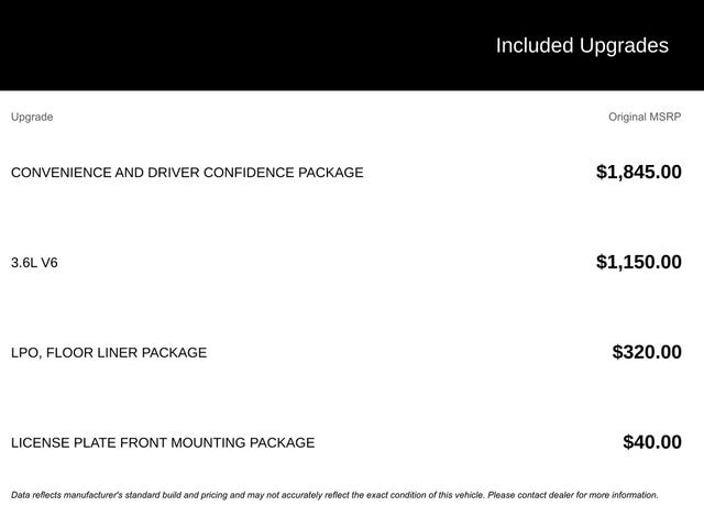 - 3.6L V6 engine with 305 horsepower and 269 lb-ft of torque $1150.00 Added Value!