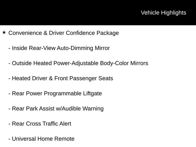 - Convenience and Driver Confidence Package, including Remote Start, Heated Seats, Rear Cross Traffic Alert, and more $$1845.00 Added Value!