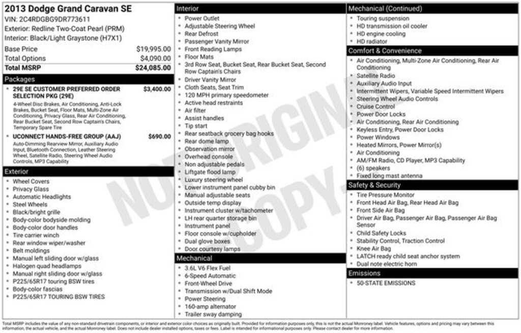 This 2013 Dodge Grand Caravan SE is a true gem, and it's been meticulously maintained right here at our dealership. With its impressive features, reliable performance, and family-friendly design, it's the perfect vehicle to take your family on the road in comfort and style.