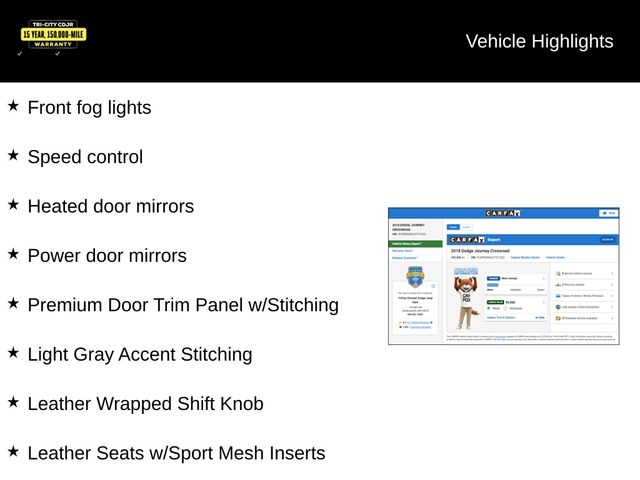 Versatility is at the heart of the Journey Crossroad, with its spacious third-row seating and split-folding rear seats. Whether you're transporting the family, hauling cargo, or a combination of both, this SUV has the flexibility to accommodate your needs. The rear window wiper and rear air conditioning keep everyone comfortable, while the power door mirrors and auto-dimming rearview mirror provide added convenience.