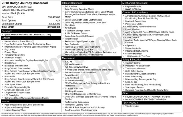 Discover the versatile and well-equipped 2018 Dodge Journey Crossroad Third-Row, a family-friendly SUV that offers a dynamic driving experience and a wealth of premium features. With its sleek silver exterior, powerful 3.6L V6 engine, and advanced all-wheel drive system, this Journey is ready to take you and your loved ones on any adventure.