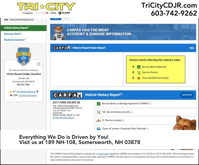 Tri-City Chrysler Dodge Jeep Ram is dedicated to your satisfaction before, during, and after your purchase. We'll go the extra mile to take care of you.