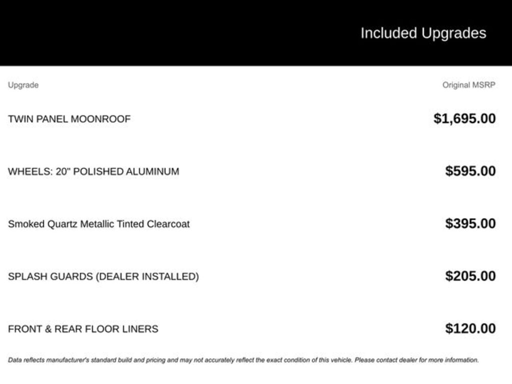 - Twin Panel Moonroof$1,695