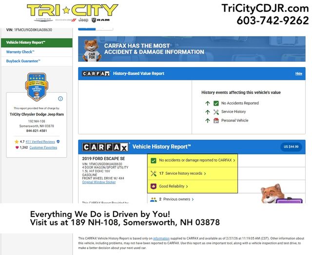Tri-City Chrysler Dodge Jeep Ram is dedicated to your satisfaction before, during, and after your purchase. We'll go the extra mile to take care of you.