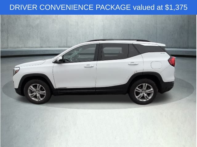 2018 GMC Terrain SLE Summit White AWD, 2 USB Data Ports w/Auxiliary Input Jack, 4-Way Manual Front Passenger Seat, 6-Speaker Audio System Feature, 8-Way Power Driver Seat Adjuster, All-Weather Cargo Mat (LPO), All-Weather Floor Mats, Auto-dimming Rear-View mirror, Bluetooth® For Phone, Driver & Front Passenger Heated Seats, Driver Convenience Package, Dual-Zone Automatic Climate Control, Emergency communication system: OnStar Guidance, Exterior Parking Camera Rear, Heated door mirrors, High-Intensity Discharge Headlights, Interior Protection Package (LPO), Power door mirrors, Preferred Equipment Group 3SA, Premium Cloth Seat Trim, Radio: GMC Infotainment Audio System w/7" Display, Remote keyless entry, Remote Start, Roof-Mounted Luggage Rack Black Side Rails, Speed control, Steering wheel mounted audio controls, Telescoping steering wheel, Tilt steering wheel, Wheels: 17" x 7" Silver Painted Aluminum.