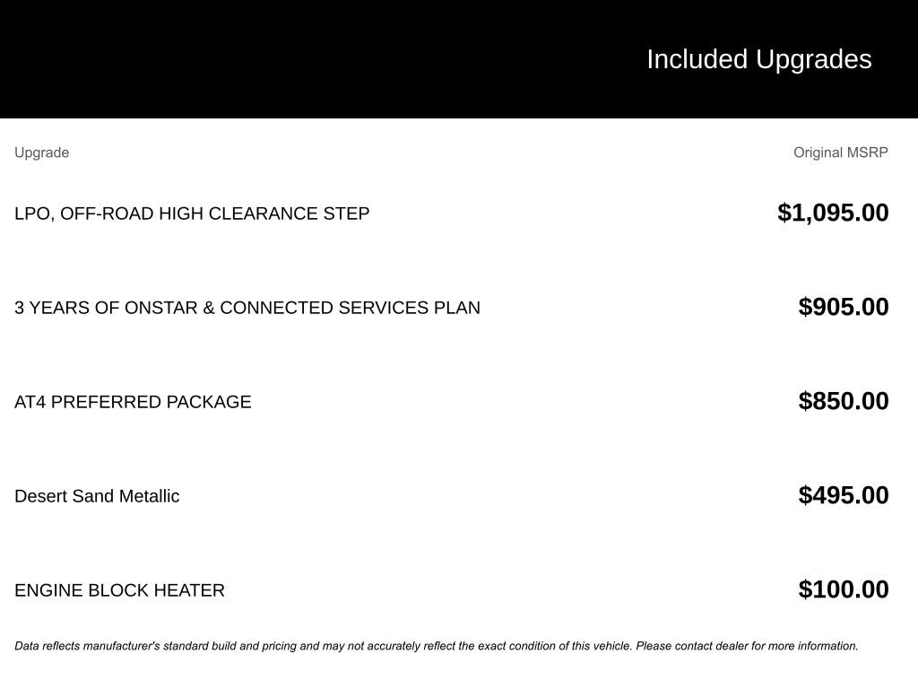 ⢠AT4 PREFERRED PACKAGE (Includes Universal Home Remote, Rear Sliding Power Window, and Adaptive Cruise Control)