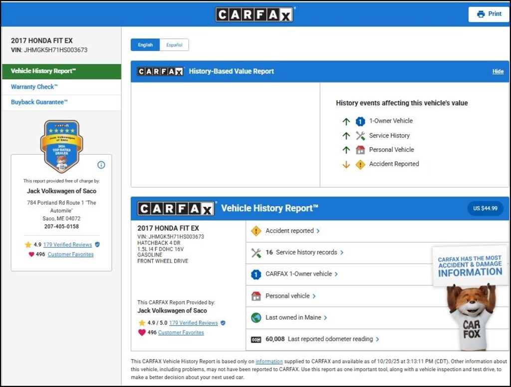 Experience the perfect blend of practicality, efficiency, and style with this 2017 Honda Fit EX. Visit our showroom today and let us demonstrate how this exceptional hatchback can elevate your driving experience. We're confident that once you take it for a test drive, you'll be eager to make it your own.