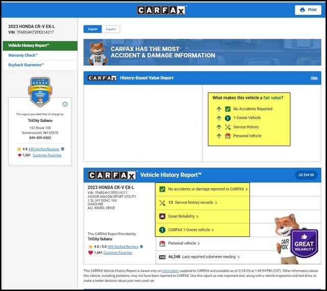 Safety is paramount in the CR-V EX-L, which comes equipped with a comprehensive suite of advanced driver-assistance technologies. Enjoy the peace of mind of features like Adaptive Cruise Control, Blind Spot Monitoring, and Rear Cross-Traffic Alert, all working seamlessly to help keep you and your loved ones secure.
