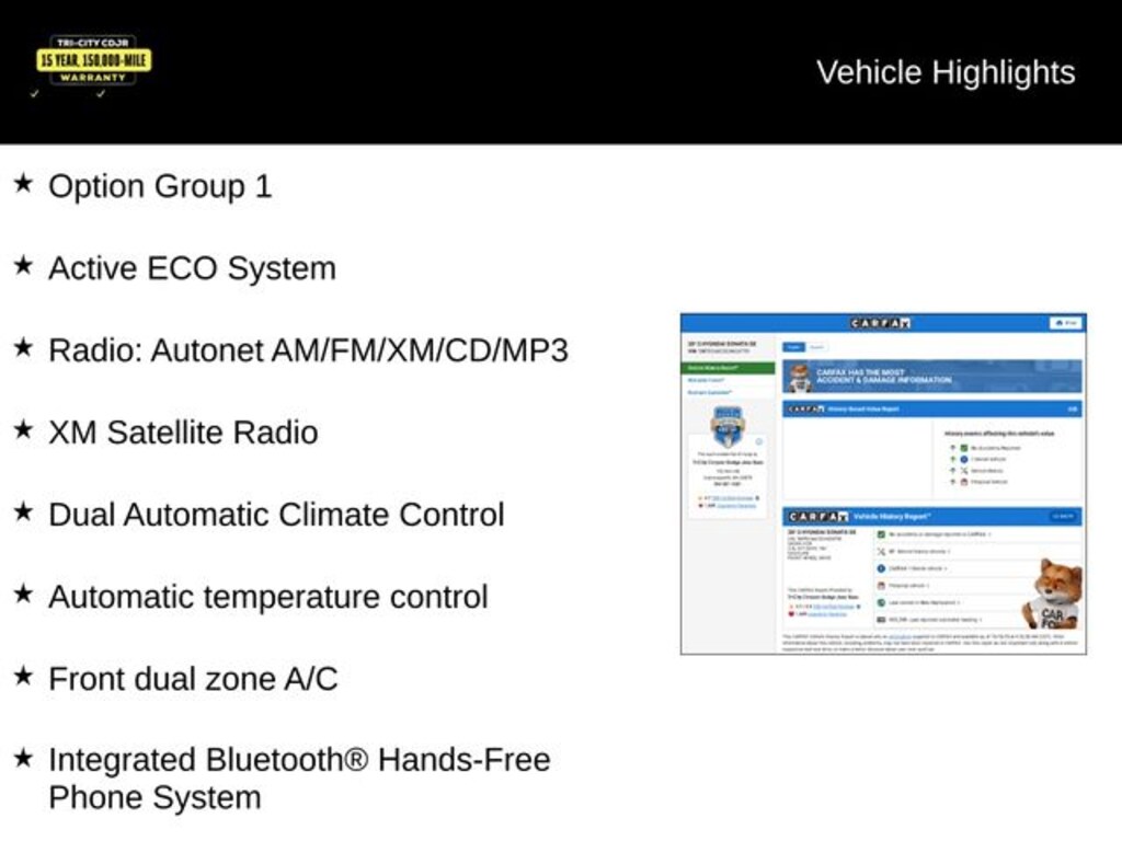 Experience the cutting-edge technology that sets this Sonata Limited apart. Seamlessly connect your smartphone with the Integrated Bluetooth® Hands-Free Phone System, and enjoy the crisp, clear sound of the Radio: Autonet AM/FM/XM/CD/MP3 with XM Satellite Radio. The Proximity Entry with Push Button Start and Remote Keyless Entry & Alarm add an extra layer of security and convenience to your daily commute.