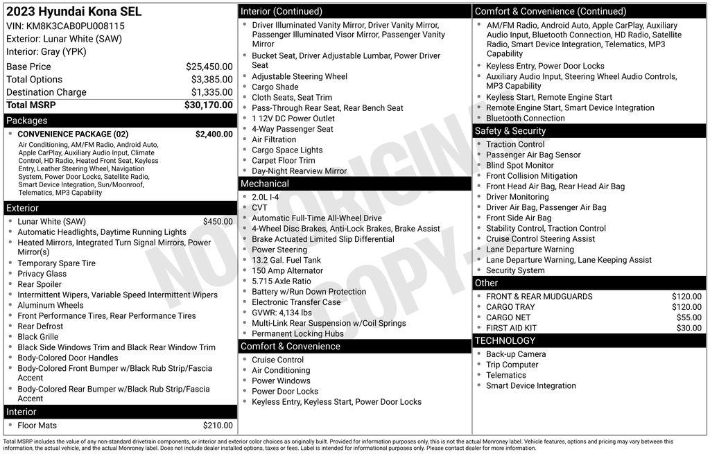 Discover the perfect blend of style, technology, and capability with the 2023 Hyundai Kona SEL. This exceptional crossover SUV is designed to elevate your driving experience, offering a versatile and refined package that caters to your every need.