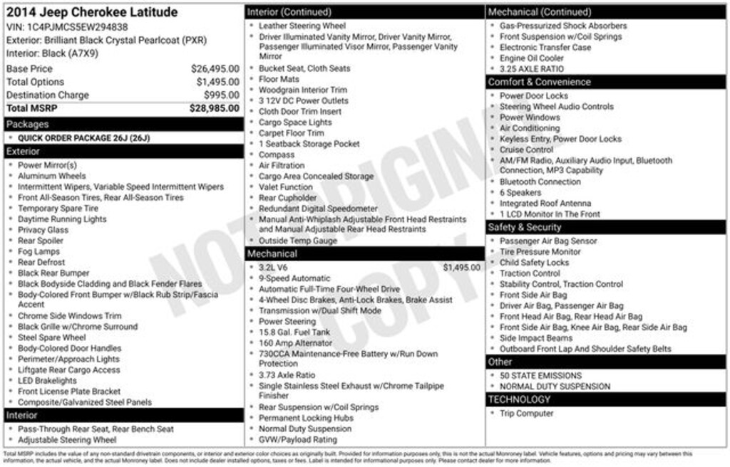 2014 Jeep Cherokee Latitude Brilliant Black Crystal Pearlcoat Clean CARFAX. Odometer is 22431 miles below market average!
