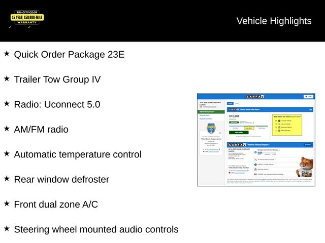 This Jeep Grand Cherokee Laredo is packed with features that prioritize your comfort and convenience. Enjoy the convenience of the Uconnect 5.0 infotainment system, complete with AM/FM radio and steering wheel-mounted audio controls. Stay comfortable year-round with the automatic temperature control and front dual-zone air conditioning. The rear window defroster and remote keyless entry add to the ease of ownership.