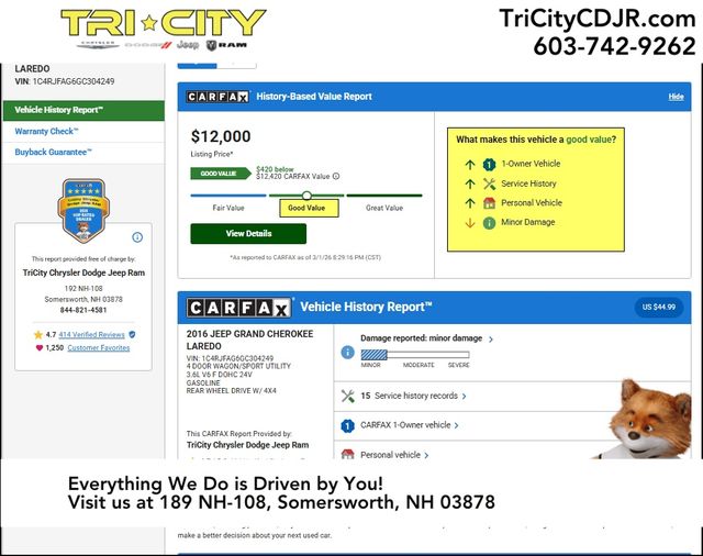 Tri-City Chrysler Dodge Jeep Ram is dedicated to your satisfaction before, during, and after your purchase. We'll go the extra mile to take care of you.