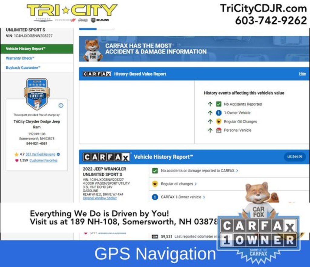 The Wrangler Unlimited Sport S also offers the convenience of advanced technology, including GPS Navigation, 4G LTE Wi-Fi Hotspot, and a suite of safety features to keep you and your passengers secure on the road. Enjoy the comfort of automatic climate control, power windows, and remote keyless entry, all while embracing the open-air freedom that only a Jeep can provide.
