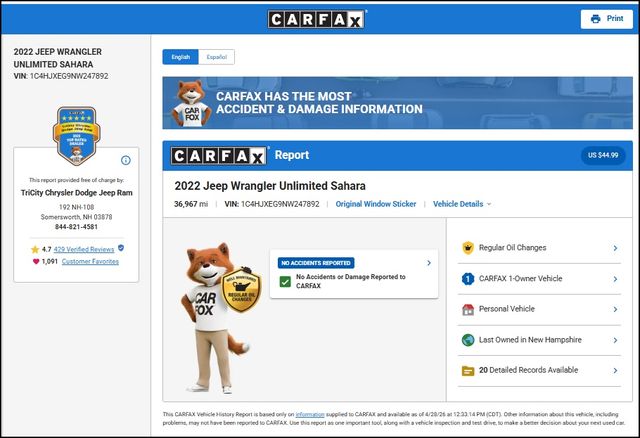 Whether you're seeking a capable off-road adventurer or a refined daily driver, this 2022 Jeep Wrangler Unlimited Sahara is the perfect choice. Experience the perfect blend of rugged capability and premium comfort. Schedule a test drive today and discover the true essence of the Jeep Wrangler.