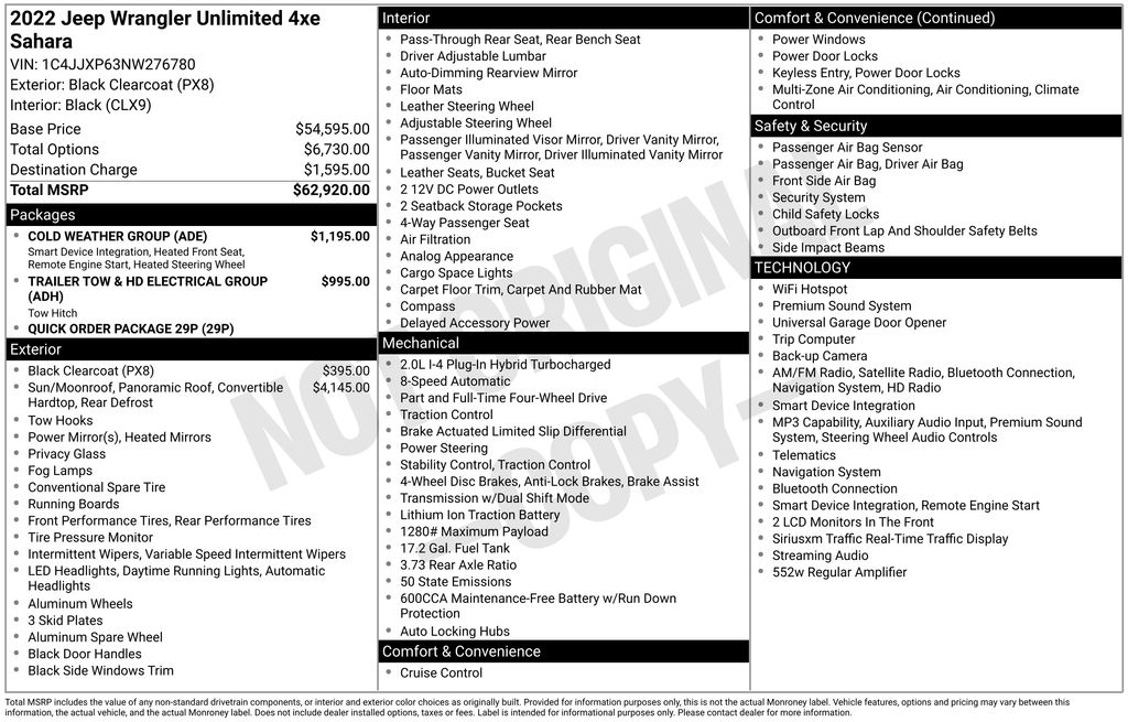 - Trailer Tow & HD Electrical Group: Equips this Wrangler with a Class II receiver hitch, 700-amp battery, and 7/4-pin wiring harness for your towing needs. $995.00 Added Value!
