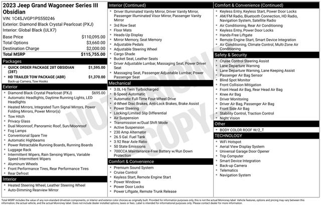 This 2023 Jeep Grand Wagoneer Series III OBSIDIAN is a true masterpiece, blending unparalleled luxury, exceptional performance, and cutting-edge technology. Experience the difference for yourself and schedule a test drive today. We're confident this SUV will exceed your expectations and become the centerpiece of your driving experience.