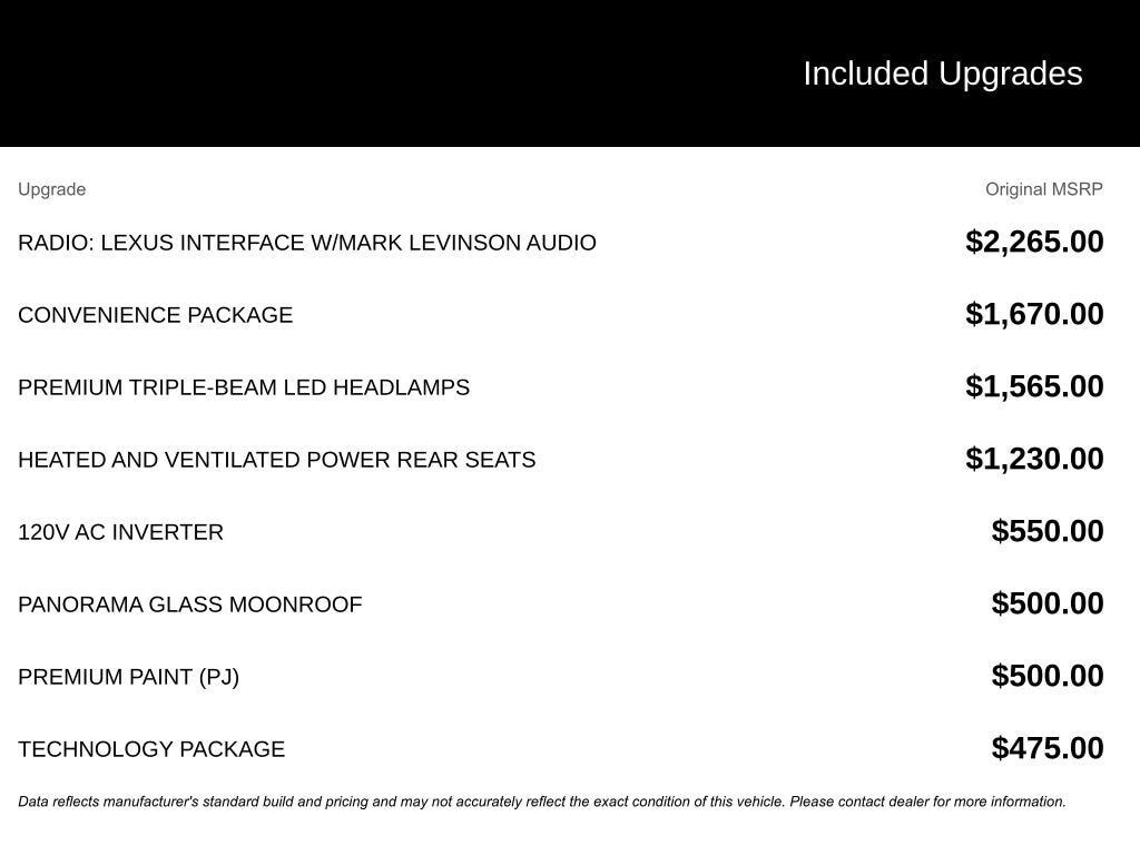 2024 Lexus RX 500h F SPORT Performance 2.4L I4 PDI Hybrid Turbocharged DOHC 16V LEV3-SULEV30 274hp, AWD, Leather, 12 Speakers, 21" Alloy Wheels, Adaptive suspension, Auto High-beam Headlights, Auto tilt-away steering wheel, Auto-dimming Rear-View mirror, Auto-leveling suspension, Delay-off headlights, Exterior Parking Camera Rear, Front fog lights, Fully automatic headlights, Heads-Up Display, Heated & Ventilated Front Seats, Heated door mirrors, Leather/Ultra Suede Seat Trim, Memory seat, Navigation System, Power Liftgate, Power moonroof, Power passenger seat, Radio: Lexus Interface w/9.8" HD Touchscreen Display, Rear air conditioning, Ventilated front seats. 27/28 City/Highway MPG
