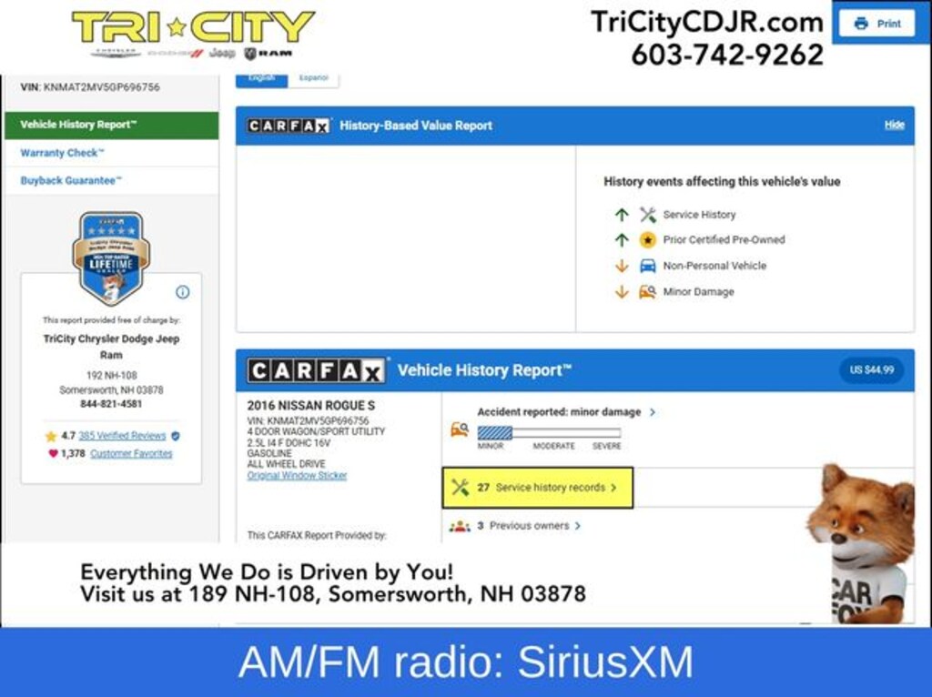 Step inside the 2016 Nissan Rogue S and discover a world of modern conveniences. Enjoy the convenience of features like AM/FM radio with SiriusXM, a CD player, and the NissanConnect infotainment system, which keeps you connected and entertained on the go. Stay comfortable with the automatic climate control and power windows, while the steering wheel-mounted audio controls allow you to easily manage your music.