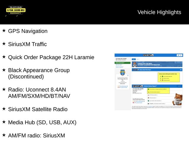 - Uconnect 8.4AN AM/FM/SXM/HD/BT/NAV with 8.4" touchscreen display