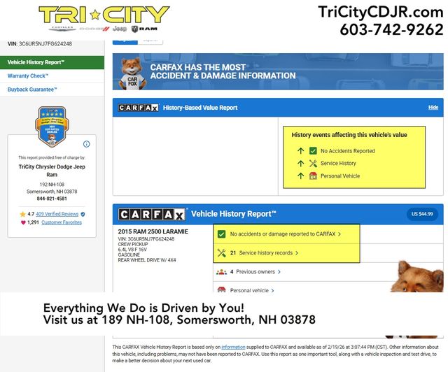 Tri-City Chrysler Dodge Jeep Ram is dedicated to your satisfaction before, during, and after your purchase. We'll go the extra mile to take care of you.