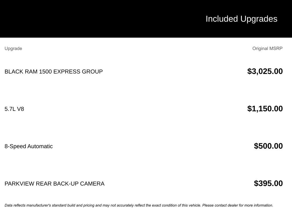Beyond its robust powertrain, this Ram 1500 Express is packed with a host of premium features that elevate the driving experience. The Uconnect 5.0 infotainment system with 5-inch touchscreen puts advanced connectivity and entertainment at your fingertips, while the ParkView Rear Back-Up Camera and Rear View Auto Dim Mirror with Display make maneuvering and parking a breeze.