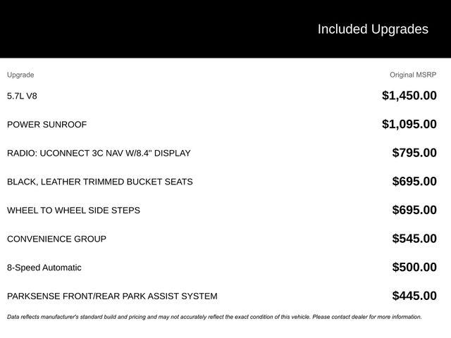 - 5.7L HEMI V8 Engine with Multi Displacement VVT $1250.00 Added Value!