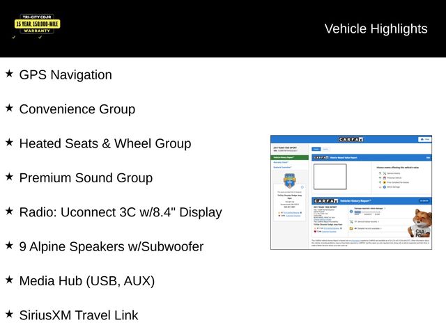 - Uconnect 3C Nav with 8.4" Display, GPS Navigation, and SiriusXM Travel Link