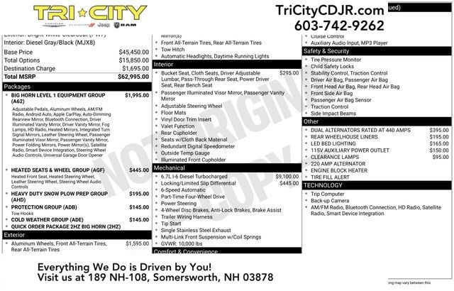 The Big Horn Level 1 Equipment Group $1,995 Customer Value!