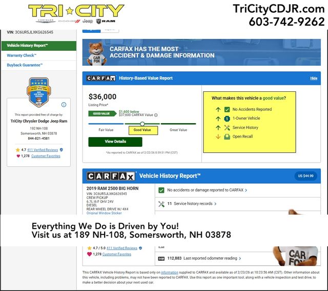 Whether you're towing a heavy load, plowing through snow, or simply enjoying the open road, this 2019 Ram 2500 Big Horn is the perfect companion. Experience the unparalleled power, capability, and comfort that only a Ram can deliver. Visit our showroom today and let us demonstrate how this exceptional truck can transform your driving experience.