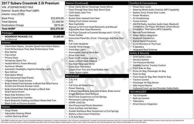 2017 Subaru Crosstrek 2.0i Premium Quartz Blue Pearl Clean CARFAX.