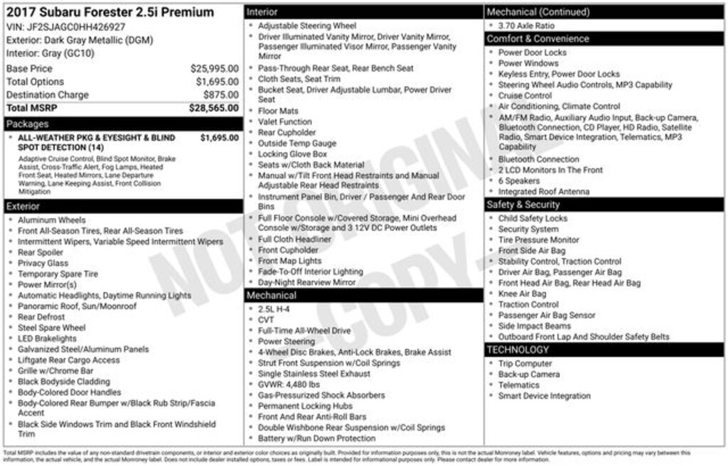- All-Weather Pkg & EyeSight & Blind Spot Detection$1,695