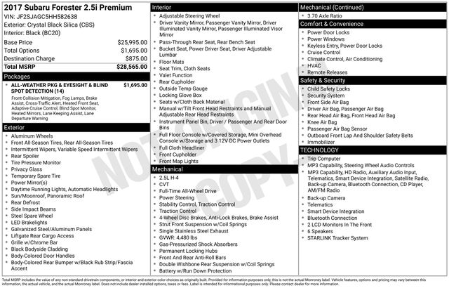Whether you're embarking on a family adventure or tackling your daily commute, the 2017 Subaru Forester 2.5i Premium is the perfect companion. With its spacious interior, ample cargo capacity, and advanced safety features, this SUV is ready to take on any challenge. Experience the exceptional craftsmanship and performance that Subaru is known for â" schedule a test drive today and discover the Forester's true potential.