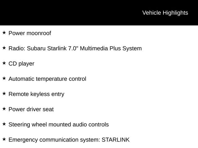 - Radio: Subaru Starlink 7.0" Multimedia Plus System