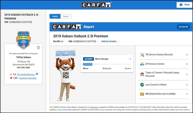 Whether you're embarking on a road trip, tackling inclement weather, or navigating the urban jungle, the 2018 Subaru Outback 2.5i Premium is the versatile and well-equipped companion you've been searching for. Experience the perfect blend of capability, comfort, and technology by scheduling a test drive at our dealership today.